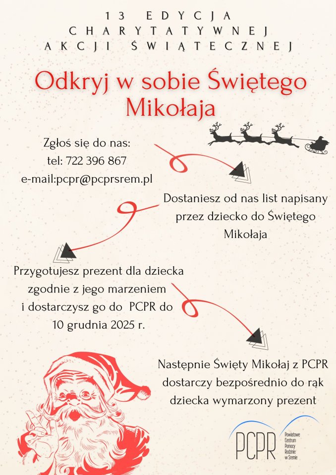 Ośrodek Pomocy Społecznej w Książu Wlkp. z radością informuje, że Powiatowe Centrum Pomocy Rodzinie w Śremie po raz kolejny organizuje świąteczną akcję pod hasłem „Odkryj w sobie Świętego Mikołaja”. 🎄💖