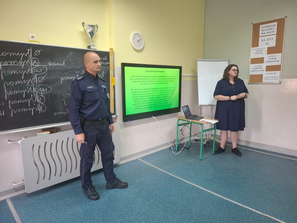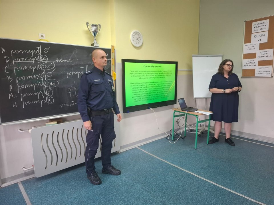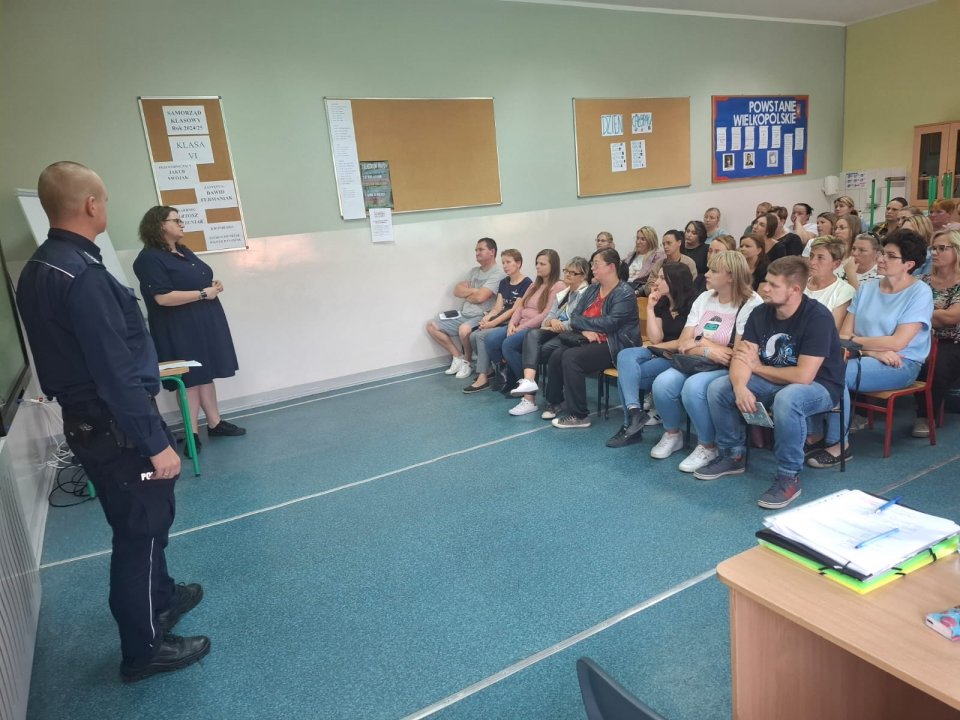 W dniu 23 września 2024 r. przedstawiciel Zespołu Interdyscyplinarnego w Książu Wlkp. Elwira Misiak oraz dzielnicowy asp. Dawid Wojciechowski spotkali się z rodzicami dzieci uczęszczających do Szkoły Podstawowej im. Powstańców Wielkopolskich w Chwałkowie Kościelnym. W trakcie spotkania przeprowadzono pogadankę pt. „UWAŻNOŚĆ – SUPERMOC RODZICA” – zagadnieniach związanych ze świadomym rodzicielstwem. Ponadto, dzielnicowy asp. Dawid Wojciechowski omówił zagadnienia związane z nadmierną aktywnością osób nieletnich w sieci Internet, która może wpływać na pogarszanie stanu zdrowia psychicznego dzieci i młodzieży oraz narastania w tej grupie wiekowej zachowań antyspołecznych.