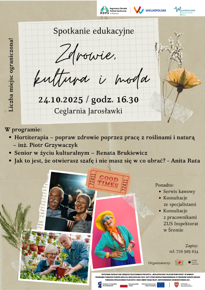 Serdecznie zapraszamy seniorów z gminy Książ Wlkp., na spotkanie edukacyjne "Zdrowie, kultura i moda".