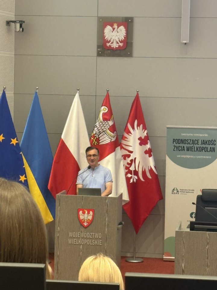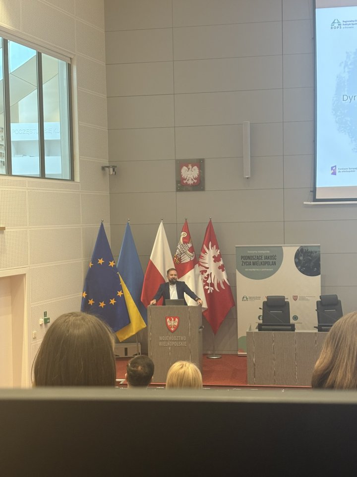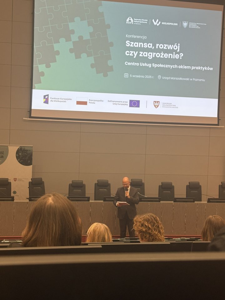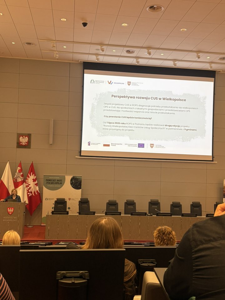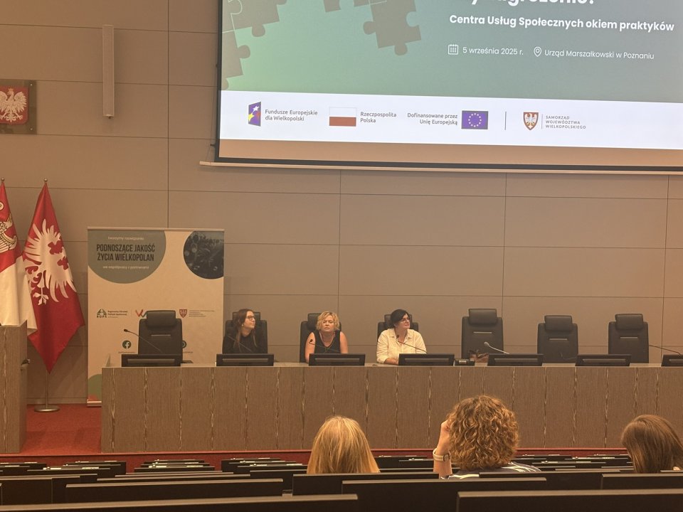 Podczas panelu dyskusyjnego swoimi doświadczeniami podzieliły się przedstawicielki działających już Centrów Usług Społecznych: Pani Santana Polowczyk – CUS w Śremie, Pani Anna Ciuba – CUS w Jarocinie oraz Pani Anna Żygulska – CUS w Dopiewie. Opowiadały o codziennej pracy w swoich jednostkach, korzyściach dla mieszkańców, takich jak łatwiejszy dostęp do usług i lepsza organizacja pracy, a także o wyzwaniach, np. ograniczeniach finansowych czy konieczności koordynacji różnych form wsparcia. Panel był okazją do wymiany doświadczeń i cennych wskazówek dla jednostek planujących przekształcenie w Centrum Usług Społecznych