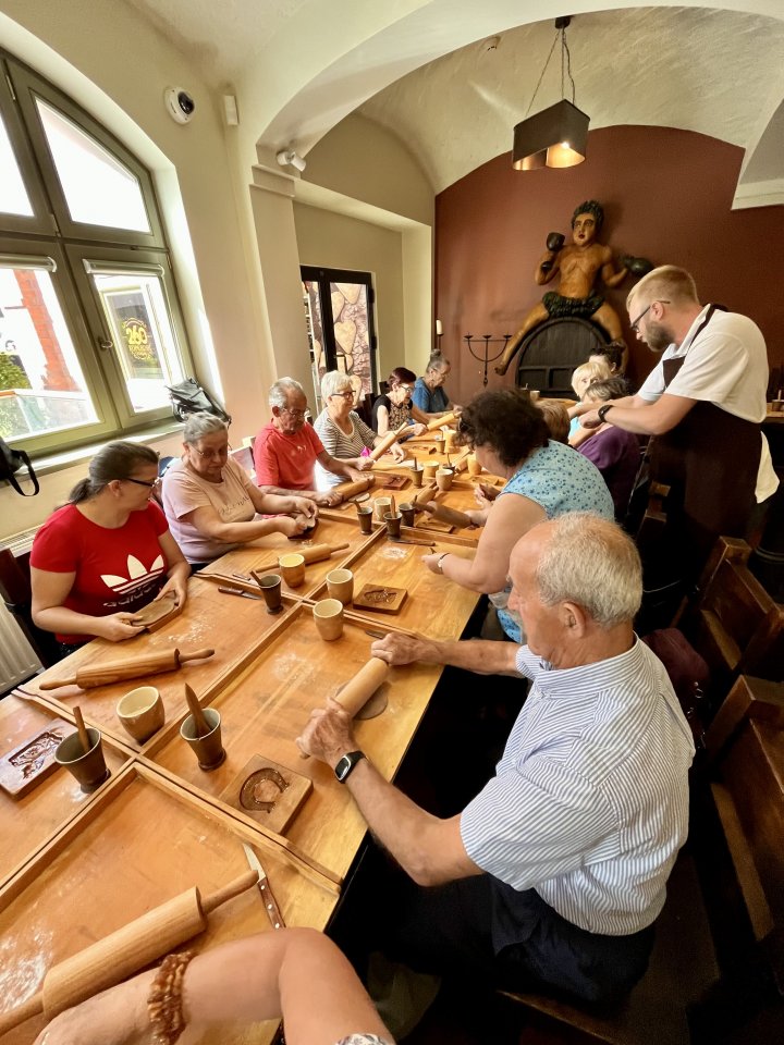 W dniu 15 września udaliśmy się na wycieczkę pt.,,Seniorzy poznają Polskę – Za Zapachem Piernika i Duchem Kopernika”. Spędziliśmy cały dzień przechadzając się po Starówce Toruńskiej oraz piekąc pyszne pierniki w Muzeum Toruńskiego Piernika. Wspólny wyjazd wrześniowy jest już naszą niepisaną tradycją, wiążącą się z obchodami przypadającego na dzień 1 października Międzynarodowego Dnia Osób Starszych. Natomiast koniec miesiąca mieliśmy przyjemność spędzić w Gogolewie, zwiedzając klimatyczny Dwór Gogolewo, spędzając czas przy ognisku oraz smakując własnoręcznie przygotowanych dań w wybornym towarzystwie Burmistrza Książa Wlkp. Pana Teofila Marciniaka, radnego gminy Książa Wlkp. Pana Pawła Walkowiak a także Kierownika Ośrodka Pomocy Społecznej w Książu Wlkp. Pani Pauli Ortmann. Stanowczo był to bardzo miły dzień pod znakiem przejażdżki rowerowej, przyjaźni, śpiewu, jedzenia oraz świętowania Dnia Chłopaka. Jeszcze raz ogromne buziaki dla naszych rodzynków -Franciszka i Walerego.