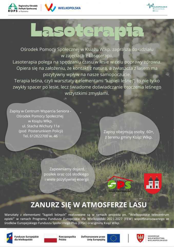 Zapraszamy do wzięcia udziału w zajęciach "Lasoterapii", zapisy w Centrum Wsparcia Seniora w Książu Wlkp. lub pod numerem telefonu 61 28 22 700 w.46